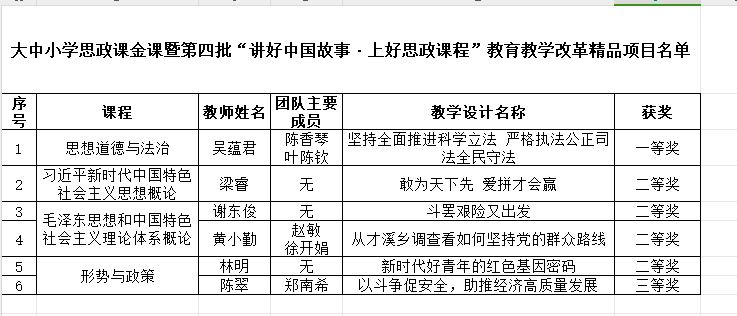 喜讯:近日,必赢官网获得大中小学思政课金课暨第四批“讲好中国故事·上好思政课程”教育教学改革精品项目一等奖一项,二等奖四项,三等奖一项。