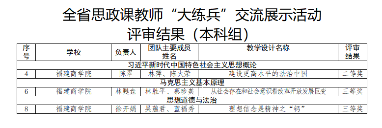 必赢官网教师在全省思政课教师“大练兵”交流展示活动中获得本科组二等奖1个,三等奖2个,具体名单如下: