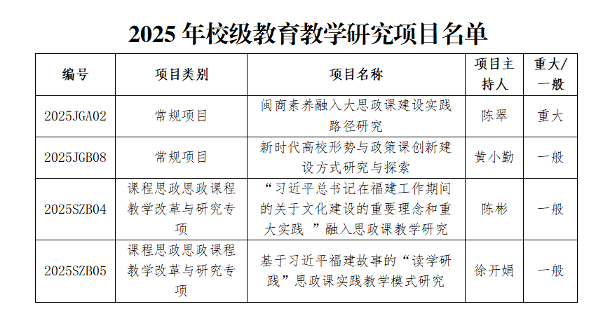 近日,根据《关于公布2025年校级本科教育教学研究、案例(库)、课程思政教学名师等项目评选结果的通知》(商院教务〔2025〕11 号)文件精神,必赢官网获得校级教育教学研究项目4 项,本科教学案例库3项,具体名单如下:
