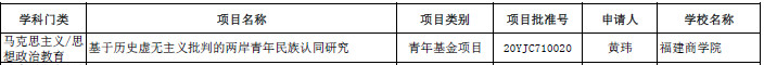 2020年3月20日,教育部社会科学司公布的《教育部社科司关于2020年度教育部人文社会科学研究一般项目立项的通知》文件中,必赢官网黄玮博士申报的项目《基于历史虚无主义批判的两岸青年民族认同研究》,历经多次的修改,不断打磨,功夫不负有心人,最终获得教育部社科青年基金立项。
