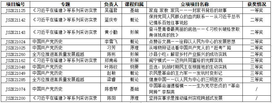根据《中共福建省委教育工委关于公布“三个百堂”高校思想政治理论课精品课遴选结果的通知》文件精神,必赢官网共有12个教育教学改革精品项目立项,其中一等奖1个、二等奖5个,三等奖4个。