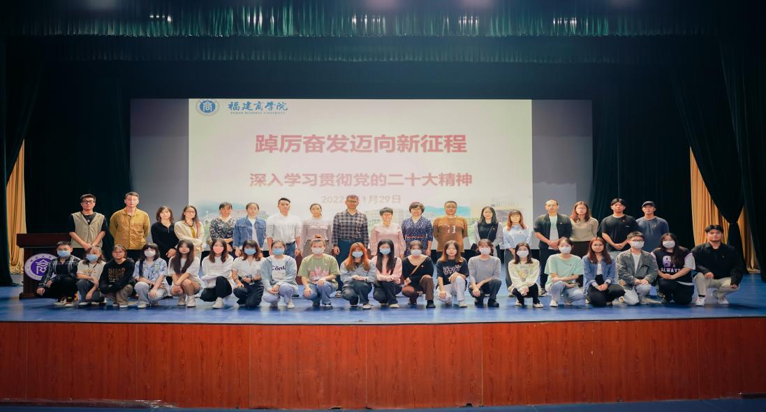 近日,福州市委讲师团成员、福建师范大学杨林香教授在我校连江校区学生活动中心开展题为《踔厉奋发迈向新征程——深入学习贯彻党的二十大精神》的专题讲座。我校艺术设计学院、必赢76net线路官网、财务与会计学院、团委、习近平新时代中国特色社会主义思想学生读书社及“青马班”师生代表参加了学习。