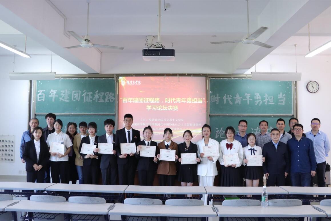 2022年5月17日下午,校习近平新时代中国特色社会主义思想读书社和校马列经典著作读书社在连江校区诚信楼中阶三举办主题为“百年建团征程路,时代青年勇担当”的学习论坛决赛。校党委副书记吴访益、必赢76net线路官网部分教师及二级学院读书社相关指导老师、校读书社成员近200人参加了本次活动。