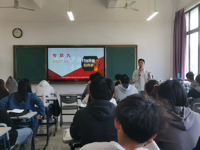 5月18日上午,必赢76net线路官网毛泽东思想和中国特色社会主义理论体系概论教研室赵敏老师以“全面从严治党”为主题,在连江校区诚信楼411举行了思政课教学示范活动,近60名师生参与观摩。