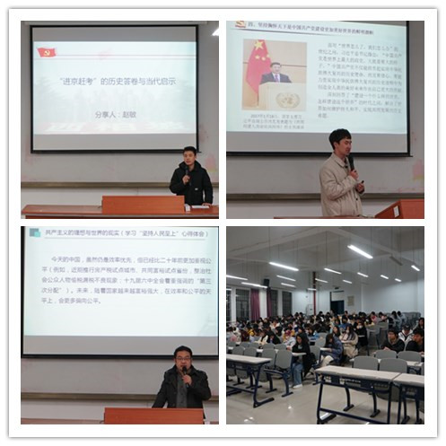 三位宣讲老师围绕党的十九届六中全会精神,以《中共中央关于党的百年奋斗重大成就和历史经验的决议》中提出的“十个坚持”历史经验为主线,分享心得体会。蓝庆专老师以《坚持胸怀天下:中国共产党人的使命与担当》为题,从文化传承、政治自觉、价值立场、世界视野四个方面阐明了坚持胸怀天下是中国共产党一以贯之的使命与担当;陈阳老师以《共产主义的理想与现实》为题,通过“公平”与“平等”内涵的对比,指出了社会主义与资本主义的本质区别,进一步凸显了共产党执政的价值取向就是坚持人民至上;赵敏老师以《“进京赶考”的历史答卷与当代启示》为题,通过讲述1949年党中央从西柏坡前往北京的“赶考”故事,剖析中国共产党人如何答好历史考卷,指明了中国共产党作为答卷人,始终以“赶考”的清醒和坚定答好新时代的答卷。