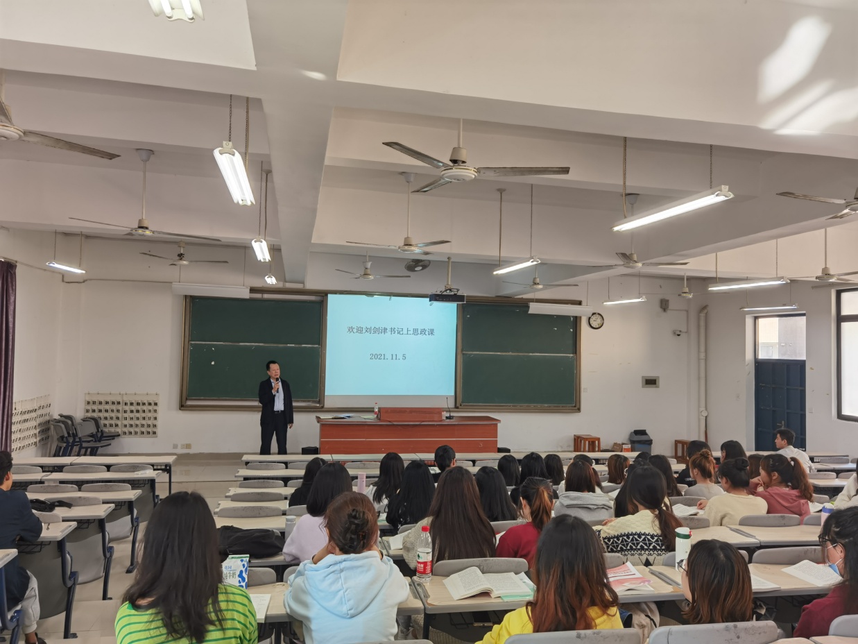 11月5日上午,校党委书记刘剑津在连江校区为2020级视觉传达设计1、2班讲授了题为“从中美关系发展历程看中国共产党百年奋斗史”的思想政治理论课。