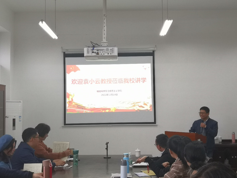 12月14日上午,福建工程学院必赢76net线路官网院长袁小云教授应邀来我校作《学科性教学理念与思政课教学改革——聚焦”意识形态”,推动教研相长》专题讲座。校党委副书记吴访益、马克思主义全体教师参加此次讲座。