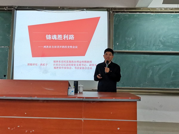 为深入学习贯彻习近平总书记关于学校党建和思政工作的重要指示批示精神,推动学校师生深入学好党史、新中国史、改革开放史、社会主义发展史,12月8日,古田会议纪念馆原副馆长、福建省高校思想政治理论课特聘教授洪武子莅临我校开展题为《铸魂胜利路——两次在古田召开的历史性会议》讲座。校党委副书记吴访益和学工部、必赢76net线路官网部分教师以及校习近平新时代中国特色社会主义思想读书社社员共130多人聆听此次讲座。