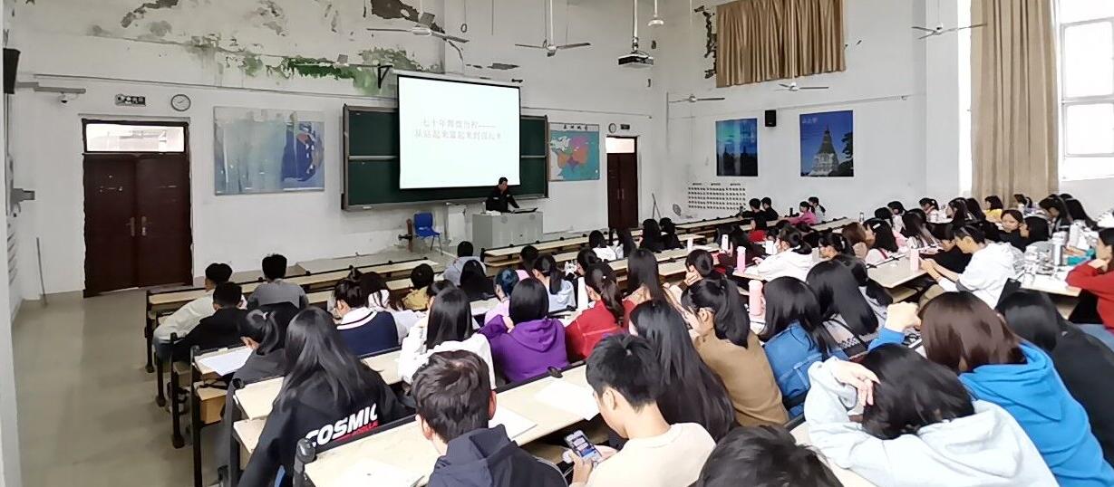 杨凡老师以新中国成立为起点,回顾了新中国成立70年来党领导人民一路披荆斩棘、奋勇前进的艰辛创业史,列举新中国成立以来取得的一系列辉煌成就,阐述中华民族实现从站起来富起来到走向强起来的伟大飞跃,并深刻揭示了一个基本结论:党的领导是实现中华民族伟大复兴的根本政治保证。在讲授中,杨凡老师强调党在社会主义建设初步探索时期走过的曲折道路为开创中国特色社会主义理论提供了宝贵的经验借鉴;进入到改革开放新时期,历届中央领导集体解放思想、实事求是,用理论创新成果引领中国向前发展,取得了历史性成就,实现了全方位变革,使中国面貌焕然一新。