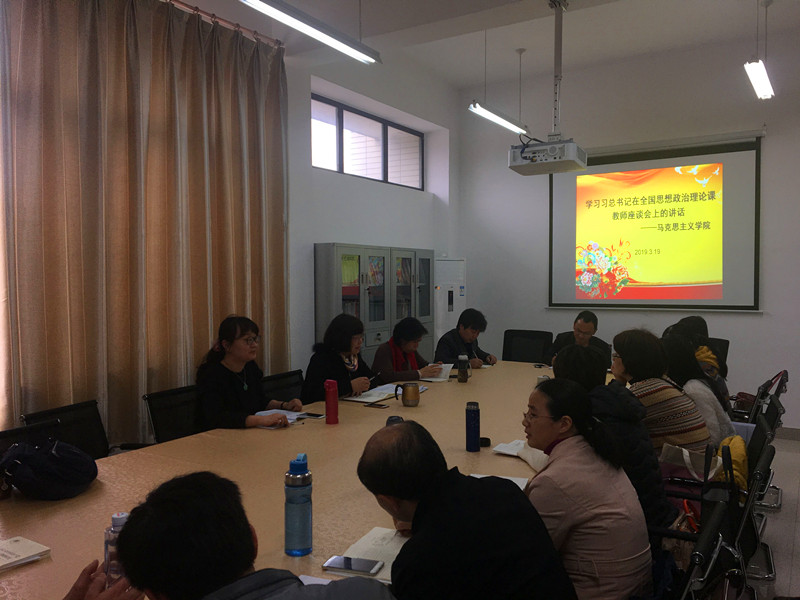 必赢76net线路官网于3月19日下午召集学院全体专职教师进行座谈,学习习近平总书记重要讲话精神,交流体会,畅谈感想。马院林萍副院长指出,党中央历来高度重视思想政治工作,特别是党的十八大以来,以习近平同志为核心的党中央高度重视思想政治理论课建设,作出一系列重大决策部署,对高校必赢76net线路官网和思想政治理论课教师寄予厚望。习近平总书记在新时代背景下专门主持召开如此高规格的学校思政课教师座谈会,充分体现了党中央对思政课建设的高度重视和对思政课教师队伍的亲切关怀。思政课是培养社会主义建设者和接班人的主渠道,关系到培养什么人、怎样培养人、为谁培养人的根本任务,是一门关键课程,对于其重要性一定要深刻认识到位。习近平总书记对思政课教师提出的“六点要求”和讲好思政课的“八个统一”,对办好思想政治理论课具有重要的指导意义。我们要按照习近平总书记提出的要求,发挥积极性、主动性、创造性,不断提高政治站位,砥砺高尚品格,练就深厚功底,赢得学生的尊重和喜爱。