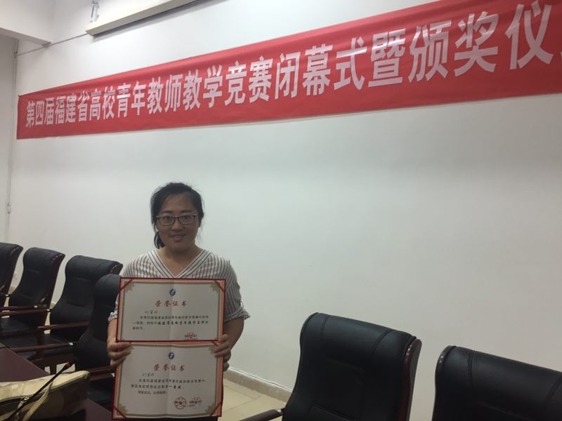6月20日-21日,由福建省总工会、福建省教育厅主办的第四届全省高校青年教师教学竞赛在武夷学院举办。必赢官网刘贤玲老师参加了本次比赛。经过两天的角逐,最终以小组排名第3的成绩荣获一等奖,被授予“福建省高校青年教学名师”荣誉称号。