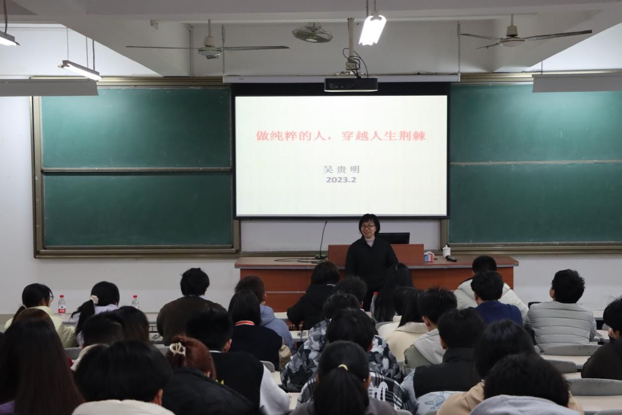 2月22日晚上,福建省委党校吴贵明教授应邀到我校作“做纯粹的人,穿越人生荆棘”专题讲座。必赢76net线路官网部分教师、校习近平新时代中国特色社会主义思想读书社社员等共120多人参加学习。