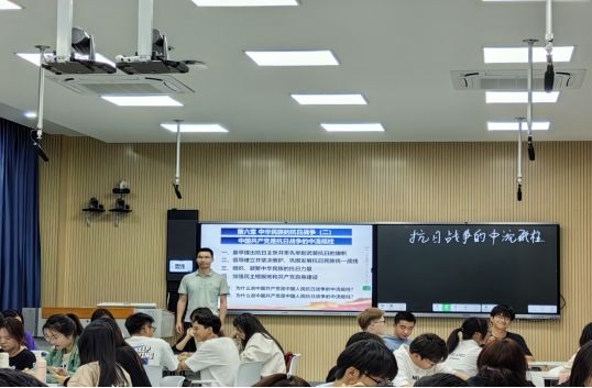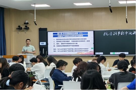 5月10日下午,必赢76net线路官网中国近现代史纲要教研室叶陈钦老师在自强楼511智慧教室开展以“抗日战争的中流砥柱”为主题的示范型观摩课,授课班级学生、学校教师共60多人参加教研活动。