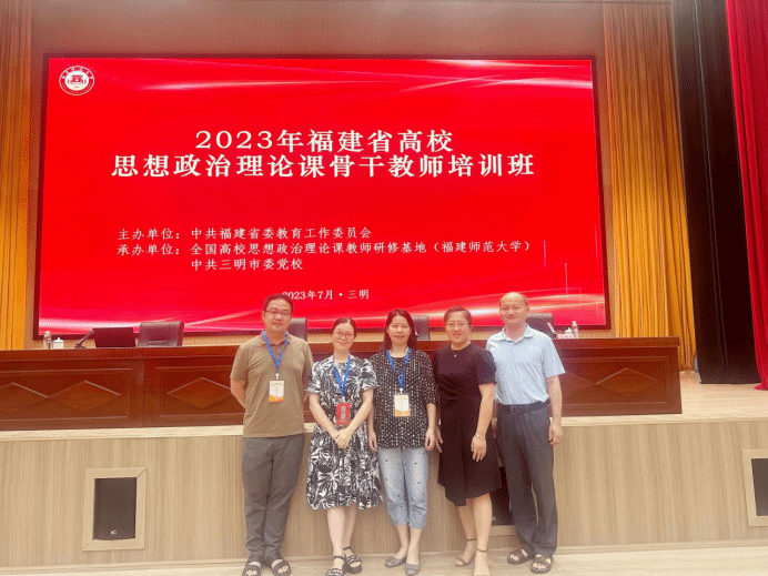 为开展学习贯彻习近平新时代中国特色社会主义思想主题教育,提升我省高校思政课骨干教师素质能力,为推动思政课改革创新,加快建设教育强省、办好人民满意教育提供坚实保障和人才支撑,7月5日至9日,由省委教育工委主办、全国高校思想政治理论课教师研修基地(福建师范大学)、三明市委党校承办的2023年福建省高校思想政治理论课骨干教师培训班在三明市委党校举办。来自全省各高校的272名思政课骨干教师参加培训,我校选派李莉、蓝福秀、董立刚、刘贤玲、陈阳等五位老师参加此次培训班学习。