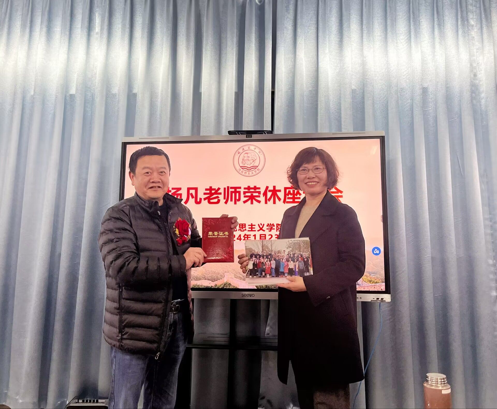 随后,必赢官网为杨凡老师光荣退休举行隆重的欢送会。杨凡老师系必赢官网思想道德与法治教研室教师,从教38年,退休在即。欢送会上,林萍院长为杨凡老师颁发了“光荣退休”纪念证书,并对杨凡老师为马院作出的贡献表示最诚挚的谢意。思想道德与法治教研室为杨凡老师献上鲜花及礼物,并表达了对杨凡老师的留念之情。接着,杨凡老师发表了深情的感言,感谢学校领导、单位同事的关心和厚爱,感恩在学院的每一天。最后,马院老师们纷纷表示:希望杨凡老师多与学院同仁联系,常回家看看,与学院共谋发展、与同仁共叙旧情。