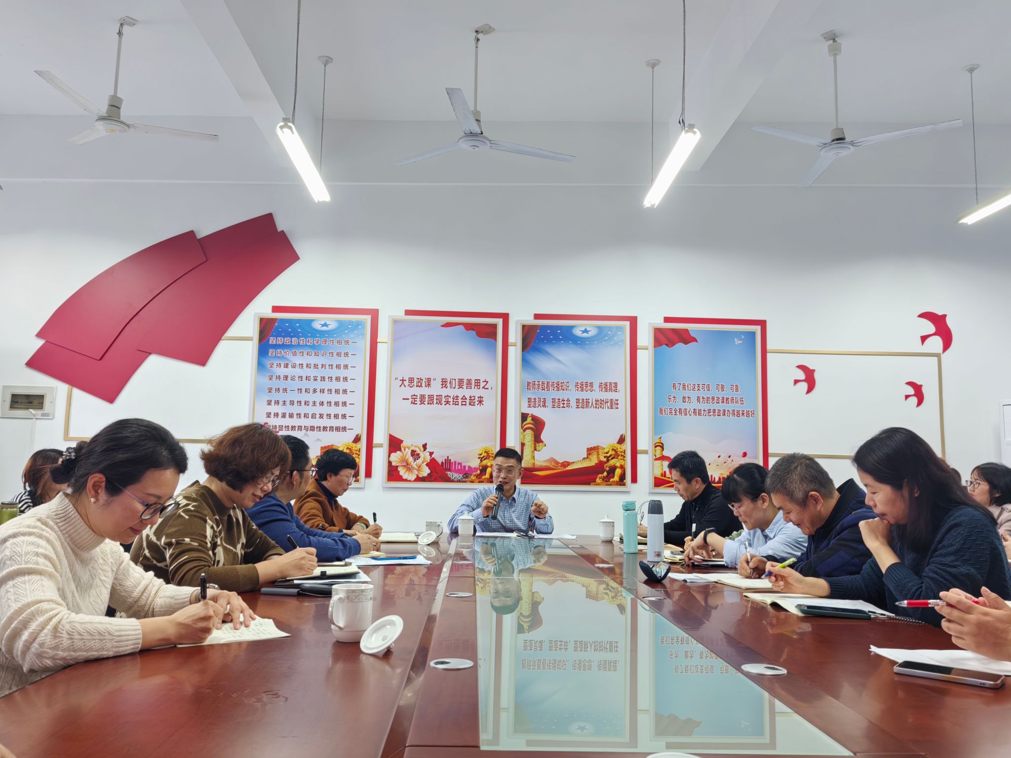 最后,学校党委书记吴访益在座谈会中带领大家再次学习了习近平总书记“3·18”重要讲话精神。他在交流中充分肯定了必赢76net线路官网思想政治理论课改革创新取得的成绩,就进一步上好思政课提出三点建议。第一,要认真学习贯彻落实习近平总书记关于教育的重要论述,深入、透彻的理解和把握思政课的重要地位、重要意义,始终坚持习近平总书记“3·18”重要讲话中的“六要”要求和“八个统一”原则,把思政课讲深、讲透、讲活;第二,要深入学习习近平新时代中国特色社会主义思想、中华优秀传统文化以及马克思主义经典著作,不断提升思政课教师的理论素养和教学、科研、育人水平,努力做到理论基础深厚、教学功底扎实、讲授方法创新,提升思政教育实效性;第三,要持续加强必赢76net线路官网、马克思主义理论学科、思想政治理论课程建设,更好发挥思想政治教育立德树人的重要作用,做到为党育人、为国育才。