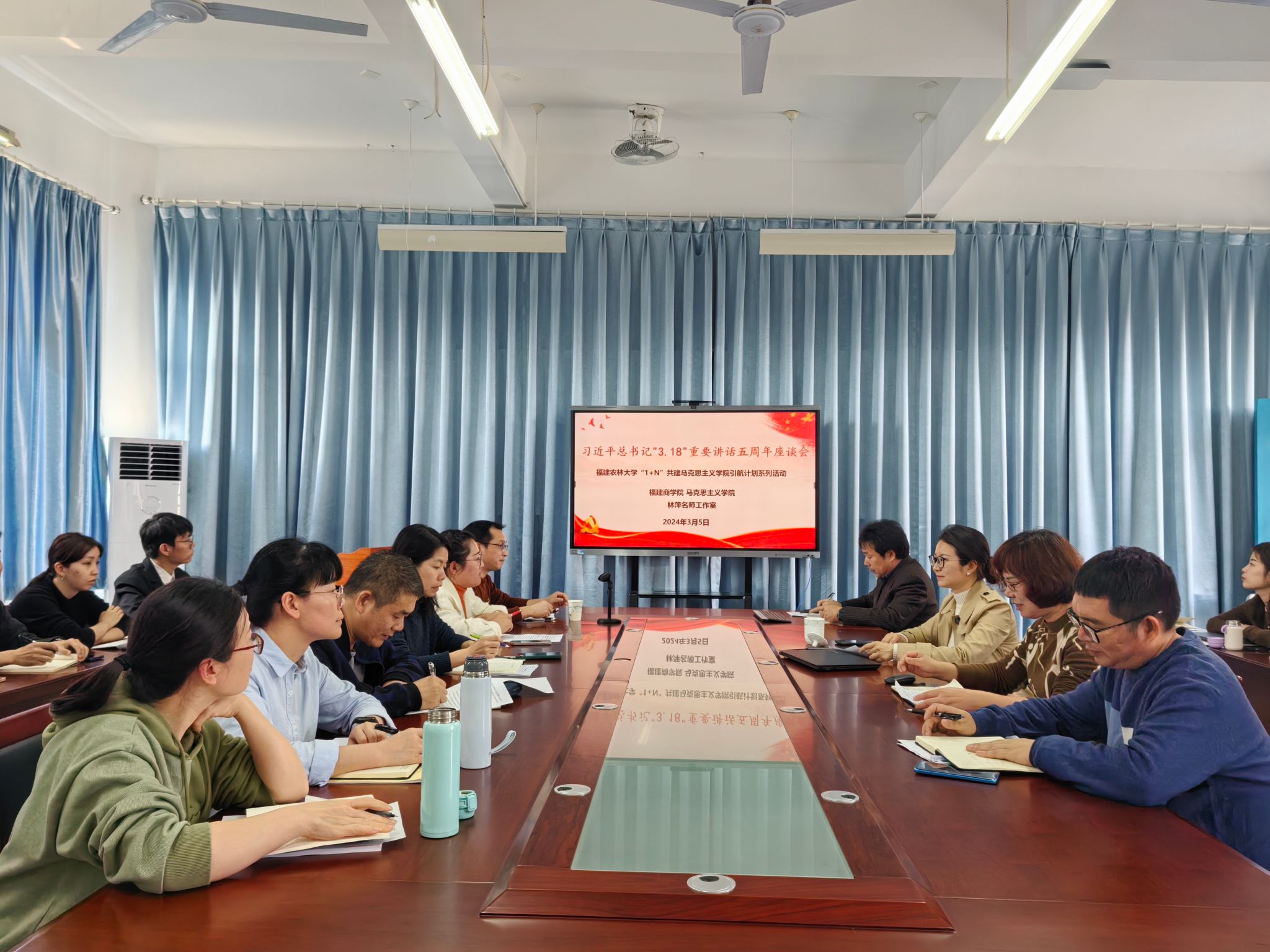 随后,学校领导、思政课教师以及学生代表结合习近平总书记“3·18”重要讲话精神,围绕思政课的意义、思政课教师队伍建设、思政课改革创新以及党对思政课的领导等方面开展交流。必赢76net线路官网院长林萍分享近年来学校思政课改革创新的生动实践及主要成效,认为近年来学校、学院和各教研室统筹谋划、科学施策,通过专家讲学、集体备课、教学竞赛等方式不断锤炼思政课教师的政治素养和道德品格,提升思政课教师的教学质量和科研水平,通过社会实践、学科竞赛等方式提高学生学习积极性、主动性,增强思政教育针对性、实效性。《习近平新时代中国特色社会主义思想概论》课教师陈火荣认为,要紧紧围绕“六要”要求,塑造一支信仰坚定、学识渊博、理论功底深厚的思政课教师队伍,担当传播知识、传播思想、传播真理,塑造灵魂、塑造生命、塑造新人的时代重任;《毛泽东思想和中国特色社会主义理论体系概论》课教师刘贤玲结合“八个统一”原则与大家交流了近年来本门课程改革创新的成果及经验,特别是分享了思政课实践教学以及思政课程、课程思政同向同行的做法、成效;《中国近现代史纲要》课教师李莉从学科建设、课堂教学、实践教学等方面分享了思政课改革过程中贯彻“八个统一”原则的方法、成果及经验;《思想道德与法治》课教师蓝福秀从教学模式改革、教学方法与手段创新、思政课程资源建设等六个方面与大家进行了交流;《马克思主义基本原理》课教师蔡珍美从经典原著资源库建设、“问题链”式教学法运用以及超星平台载体使用等方面分享了本门课程在建设省级一流课程中的成效、经验以及存在的不足;《形势与政策》课教师黄小勤从师资队伍建设、教学资源盘活以及教学效果提升等三个方面交流了《形势与政策》课“谁来上”“上什么”“怎么上”等问题。王光俊同学结合自身的学习成长经历,从汲取真理、坚定信心、实现价值三个方面分享了三年来思政课学习体会。林文艺副校长充分肯定了各位师生的发言,她在交流中指出,思政课是一门立德树人的关键课程,教师在教学中需要注意遵循学生成长规律,让思政课更具亲和力和针对性,给青年学生以人生启迪、实践智慧、精神力量。