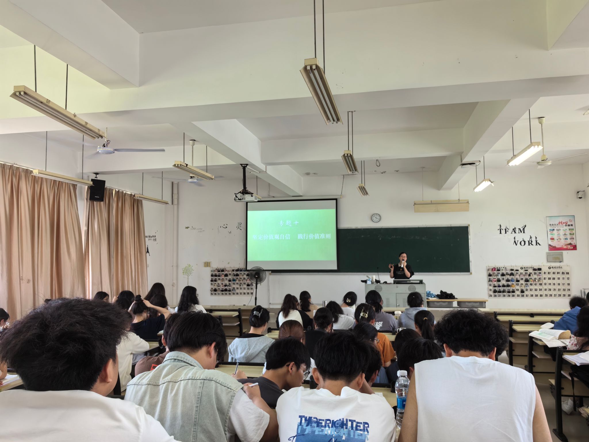 4月15日上午,必赢76net线路官网思想道德与法治教研室蓝福秀老师以“坚定价值观自信 践行价值准则”为主题,在马尾校区至善楼楼T3教室开展本学期公开示范课教学,近110名师生参与观摩。