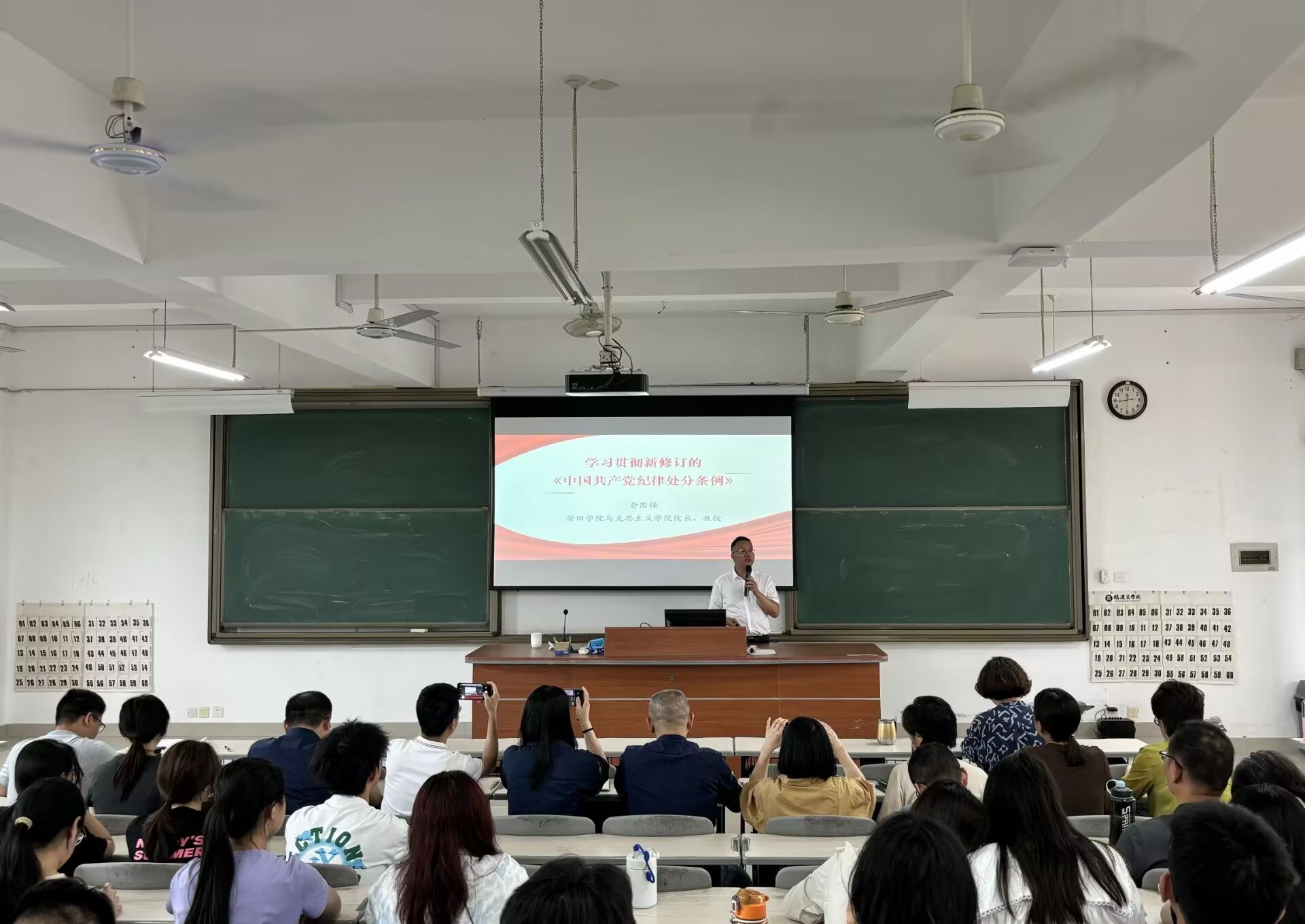 为深入学习贯彻修订后的《中国共产党纪律处分条例》,5月7日下午,必赢76net线路官网、旅游与休闲管理学院联合举办了“学习贯彻新修订的《中国共产党纪律处分条例》(以下简称《条例》)”专题讲座,讲座由莆田学院马院院长俞国锋教授做报告。必赢76net线路官网、旅游与休闲管理学院全体党员教师、部分学生党员及习近平新时代中国特色社会主义思想读书社社员共100多人参加本次讲座。