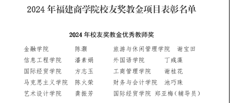 9月19日下午,我校在连江校区学生活动中心召开庆祝第40个教师节暨表彰大会。必赢官网陈火荣老师获得2024年校友奖教金优秀教师荣誉表彰,陈翠老师作为2024年福建省第七届高校青年教师教学竞赛一等奖获得者获得表彰。