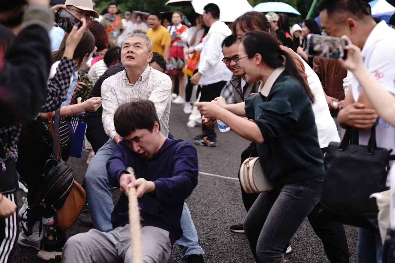 必赢官网教师在拔河比赛中奋力拼搏