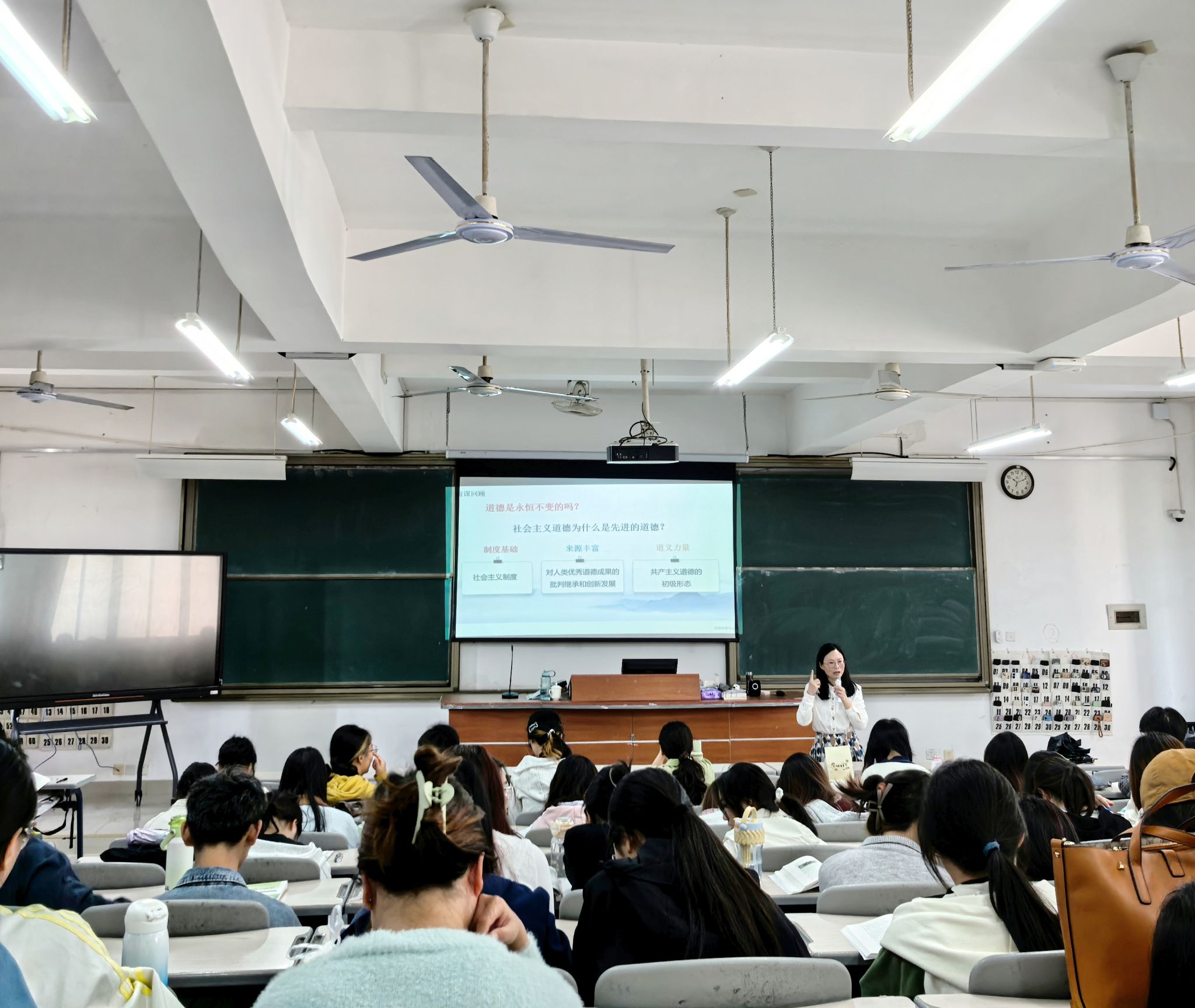 4月14日上午,必赢76net线路官网思想道德与法治教研室徐开娟老师在连江校区诚信楼中阶2开展以“传承中华传统美德 发扬中国革命道德”为主题的公开课。
