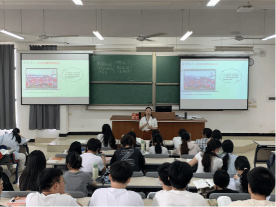 5月23日,习近平新时代中国特色社会主义思想概论教研室李金凤老师在连江校区自强楼中阶1开展以“中国特色大国外交和推动构建人类命运共同体”为主题的公开课。