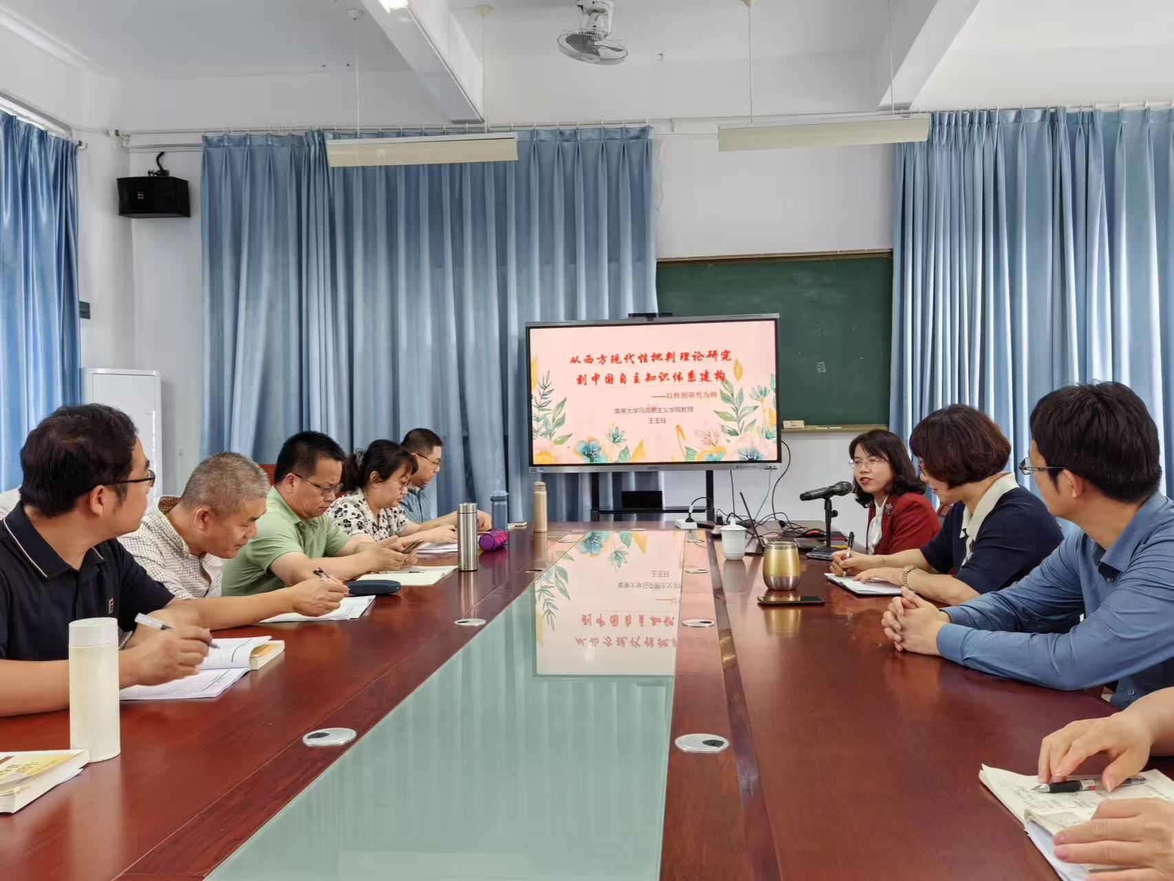 5月27日下午,集美大学必赢76net线路官网王玉珏教授应邀为必赢官网教师作题为《从西方现代性批判理论研究到中国自主知识体系建构》的专题讲座。讲座由必赢官网林萍院长主持,学院党委书记刘亮元、副院长谢东俊和学院全体教师参加。