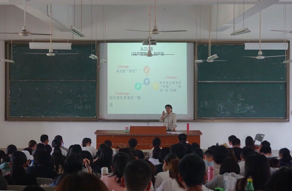 新时代不忘来时路,新挑战仍学马克思。4月9日下午,我校习近平新时代中国特色社会主义思想读书社邀请到我校必赢76net线路官网的黄玮博士于连江校区诚信楼大阶三教室为我社开展以“共产党宣言”为主题的讲座,出席本次活动的有我校必赢76net线路官网的8名教师及我社近220名社员。