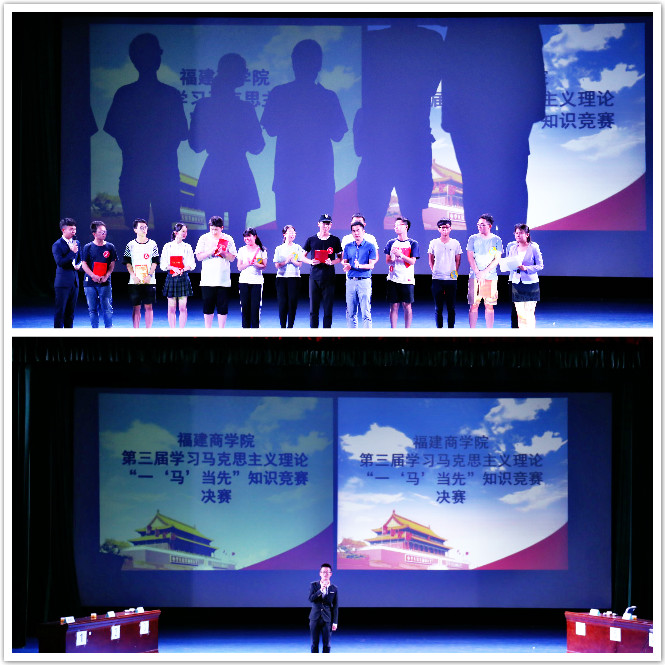 为贯彻落实全国、全省高校思想政治工作会议精神,深入实施大学生马克思主义自主学习行动计划,进一步激发大学生学理论学马列的兴趣和热情,引导当代青年大学生健康成长。6月11日晚,由学生处和必赢76net线路官网举办的福建商学院第三届学习马克思主义理论“一‘马’当先”知识竞赛(决赛)在连江校区学生活动中心举行。学生处杨国金副处长、必赢76net线路官网负责人、部分系(院)辅导员和习近平新时代中国特色社会主义思想读书社全体社员共300人出席了本次活动。