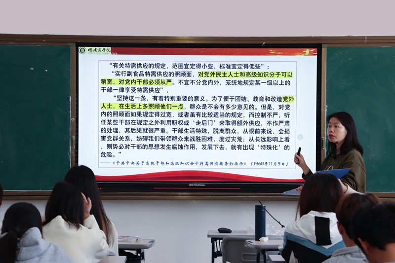 为进一步学习贯彻党的十九届六中全会精神,从党的百年奋斗重大成就和历史经验中汲取前行动力,使青年学生深刻领会百年大党为什么能够成功﹑未来怎样才能继续成功的根本原因所在,5月17日下午,必赢76net线路官网李莉副教授应邀在连江校区诚信楼302教室开展“百年光荣:中国共产党和人民”主题宣讲活动。校习近平新时代中国特色社会主义思想读书社社员﹑连江校区青马班学员参与学习。