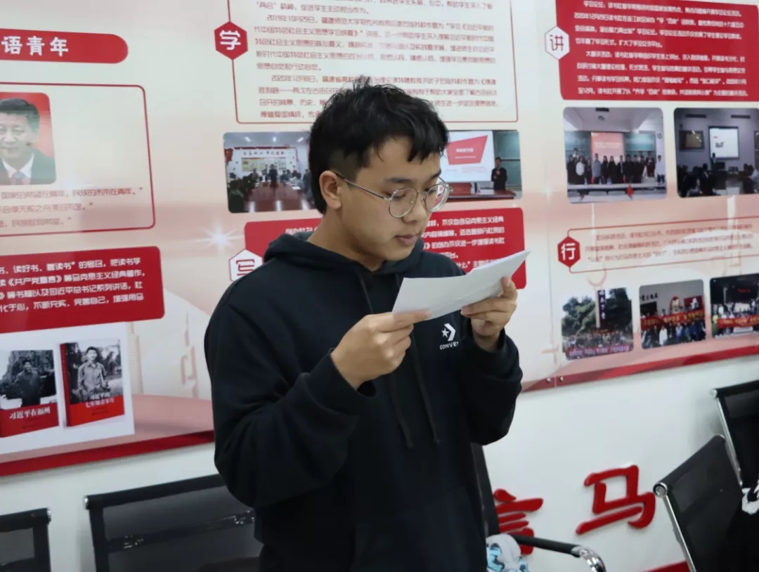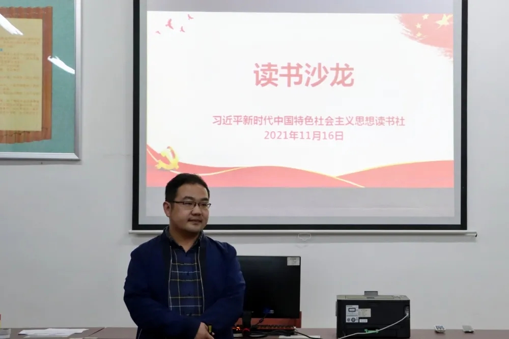 为进一步深入学习中国共产党百年奋斗重大成就和历史经验,深刻感受中国共产党人在中华民族伟大复兴征程中体现出的爱国情怀、高尚品格和精神风骨,汲取奋进力量,校习近平新时代中国特色社会主义思想读书社于2021年11月16日晚在连江校区自强楼114活动室开展读书沙龙活动。必赢76net线路官网陈阳老师、叶陈钦老师以及读书社第五小组全体社员共40多人参加此次活动。活动由叶陈钦老师主持。