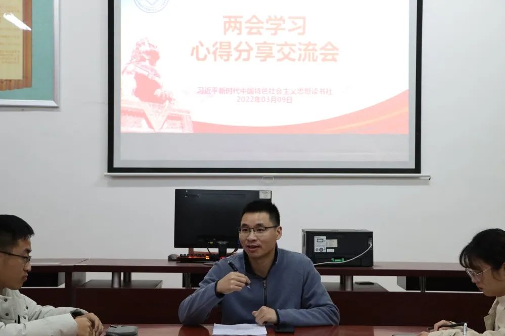 为深入贯彻学习两会精神,促进广大学子深入了解和贯彻习近平新时代中国特色社会主义思想,让师生们在“学”中熟知基本内容,在“悟”中领会精髓要义。2022年3月9日晚,校读书社、必赢76net线路官网读书社在连江校区自强楼114活动室开展了关于两会精神的学习心得分享会。会议由必赢76net线路官网叶陈钦老师主持,读书社学生干部干事参与此次活动。活动中,叶陈钦老师与同学们相互探讨、深入交流学习两会的心得体会。