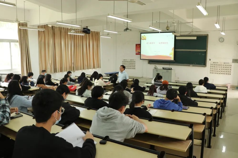 为进一步学习贯彻党的十九届六中全会精神,深刻领悟党百年奋斗的宝贵经验,坚定青年学生对中国化马克思主义理论的信仰,深化对中国共产党执政规律的认识,使新时代青年学生看清楚过去为什么能够成功、弄明白未来怎样才能成功,2022年4月19日下午,必赢76net线路官网谢东俊副教授在马尾校区允能楼T1教室开展“奋斗新青年,追梦新时代”专题讲座。校马列经典著作读书社指导教师、读书社社员、马尾校区青马班学员参与学习。