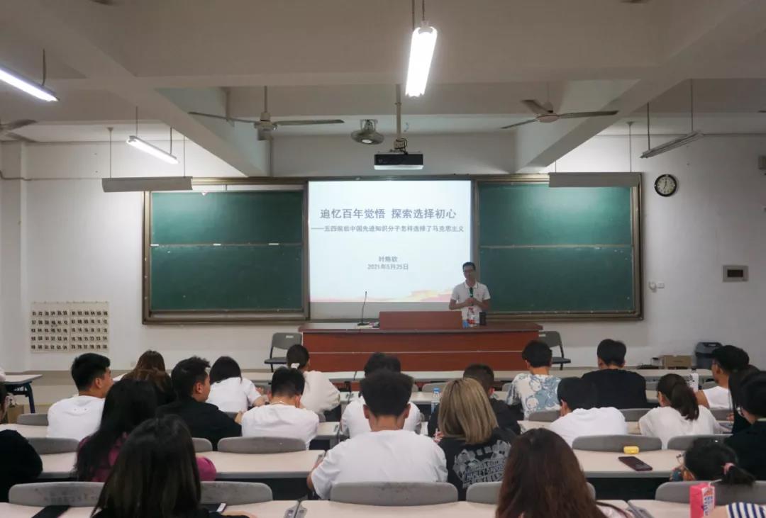 为认真学习贯彻落实习近平总书记在党史学习教育动员大会上的重要讲话精神,推动学校师生深入学好党史、新中国史、改革开放史、社会主义发展史,献礼建党一百周年,普及社会科学知识。5月25日晚必赢76net线路官网叶陈钦老师在学校科技活动周开展主题为“追忆百年觉悟 探索选择初心——五四前后中国先进知识分子怎样选择了马克思主义”讲座,校读书社近100名社员参加学习。